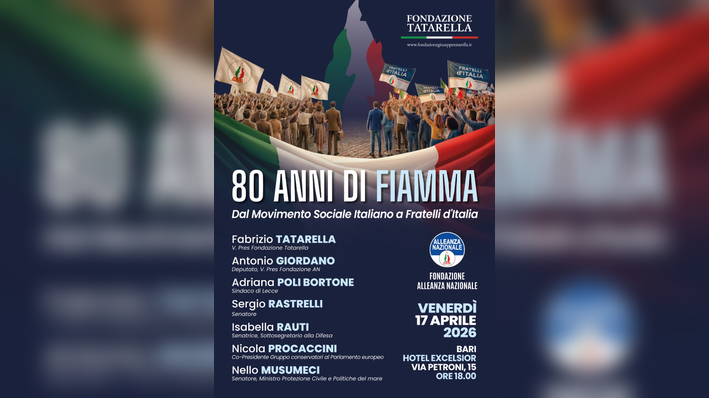 Ottant’anni di storia politica racchiusi in un simbolo che non ha mai smesso di ardere nelle schede elettorali. La Fondazione Tatarella, in collaborazione con la Fondazione Alleanza Nazionale, promuove a Bari il convegno “80 anni di Fiamma. Dal Movimento Sociale Italiano a Fratelli d’Italia”.