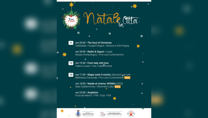 Il programma Natale in Città continua a illuminare Acquaviva delle Fonti con una serie di appuntamenti dedicati a famiglie, giovani e appassionati di cultura. Dal gospel al cinema, dalle degustazioni agli spettacoli, la città si prepara a vivere tre serate (11, 12 e 13 dicembre) ricche di iniziative tra il centro storico e gli spazi culturali più rappresentativi.
