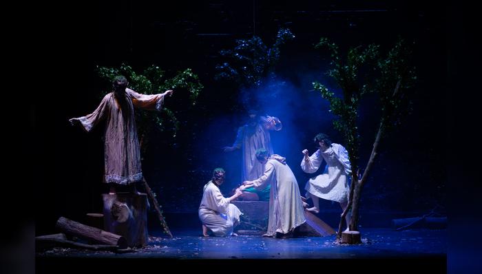 Nel cuore della scena si agitano Oberon e Titania, sovrani delle fate, insieme al dispettoso Puck: figure istintive e selvatiche che incarnano la forza primordiale del desiderio. Accanto al mondo fatato si sviluppa quello irresistibilmente comico della compagnia di artigiani-attori impegnati a preparare uno spettacolo per le nozze del duca di Atene, regalando momenti di metateatro e ironia.