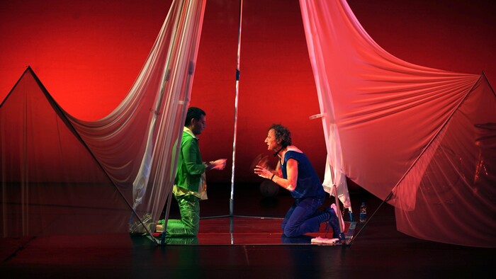 L’habitat scenico ideato da Flavia Mastrella non si limita a fare da sfondo: è un vero e proprio corpo architettonico che condiziona movimenti, parole e percezioni, trasformando lo spazio in una macchina di sollecitazioni visive e sensoriali, in cui spettatore e attori sono immersi in un flusso continuo di immagini, suoni e tensioni emotive.
