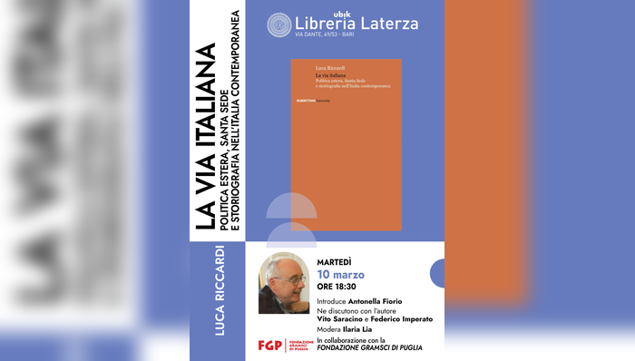 Una giornata di approfondimento dedicata alle trasformazioni della politica estera italiana tra storia e attualità. Martedì 10 marzo la Fondazione Gramsci di Puglia promuove un doppio appuntamento in occasione della presentazione del volume di Luca Riccardi, La via italiana. Politica estera, Santa Sede e storiografia nell’Italia contemporanea (Soveria Mannelli, Rubbettino Editore, 2025).