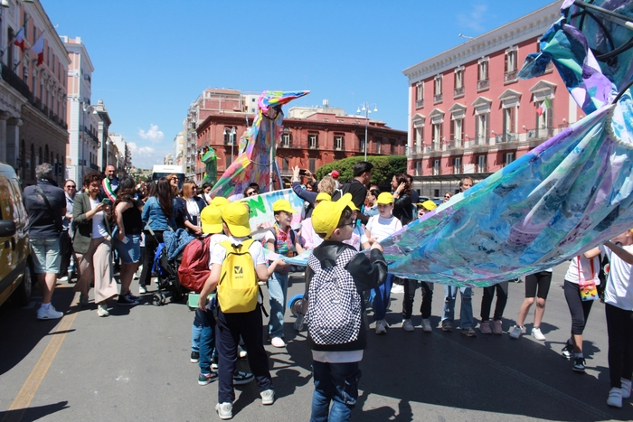 Il Corteo ha visto la partecipazione degli alunni degli istituti ‘Fraccacreta’, ‘Don Milani’ e ‘Margherita’ di Bari, della scuola dell’infanzia ‘Sacro cuore’ di Bitritto e della ‘De Gasperi – Pende’ di Noicattaro.