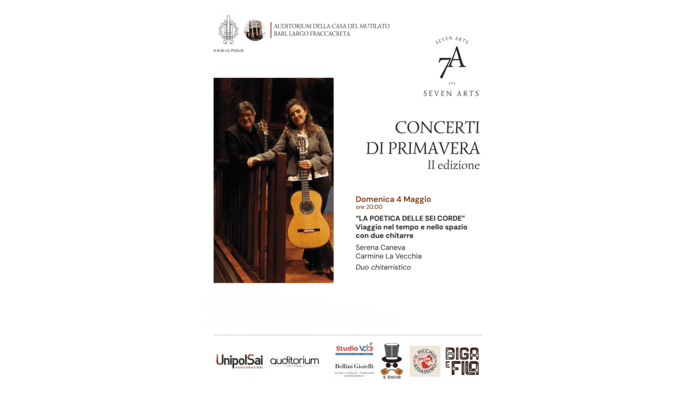 Domenica 4 maggio alle ore 20:00, l’Auditorium della Casa del Mutilato di Bari riapre le sue porte alla grande musica con un nuovo appuntamento dei “Concerti di Primavera”, rassegna firmata dall’associazione Seven Arts.