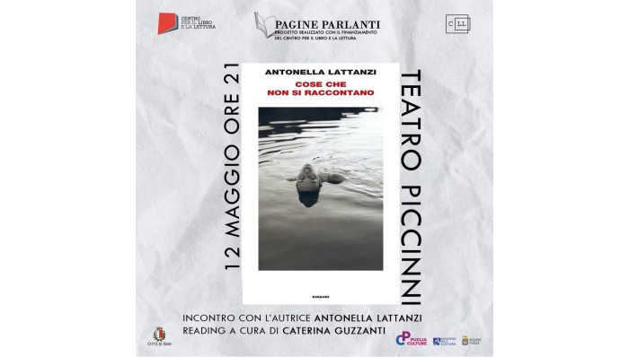 · Il 12 maggio, alle ore 21, l’attrice e regista Caterina Guzzanti leggerà degli estratti dal libro “Cose che non si raccontano” di Antonella Lattanzi, scrittrice barese ormai affermata nel panorama letterario italiano. A seguire sul palco l’attrice e l’autrice del libro si confronteranno e incontreranno il pubblico.