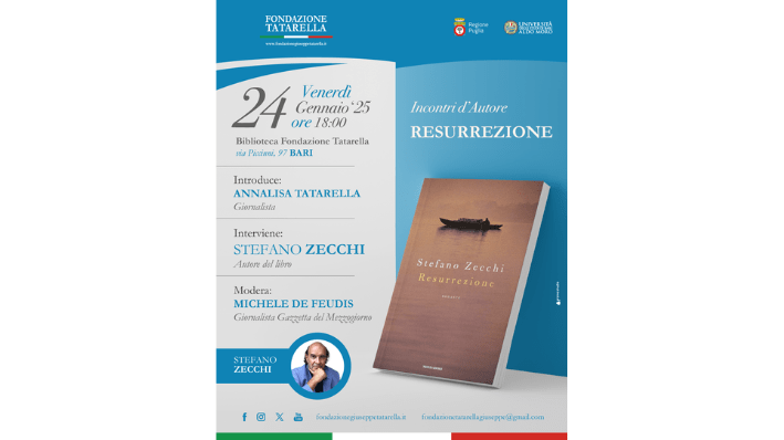 Venerdì 24 gennaio 2025, alle ore 18, la biblioteca della Fondazione Tatarella a Bari diventerà palcoscenico per la presentazione del nuovo romanzo “Resurrezione”, opera del rinomato autore Stefano Zecchi, pubblicato da Mondadori. L’evento è parte integrante della rassegna “Incontri d’Autore”.