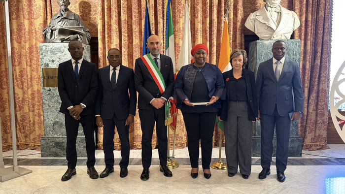 L’ambasciatrice era accompagnata da una delegazione composta dal Ministro Consigliere Virgile Akiapo, dal Primo Consigliere Passoh Joachim Bogui, dal Responsabile della Sicurezza Interna Abdoulaye Coulibaly e dal Responsabile del Cerimoniale Roland N’Takpe.