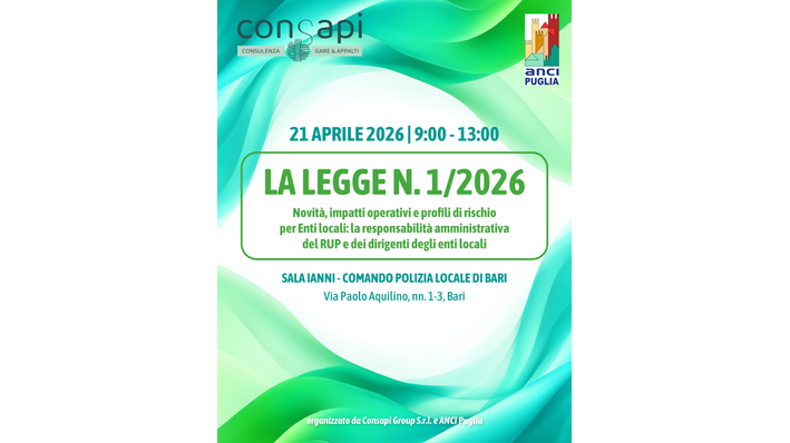 L’evento è organizzato da Consapi Group S.r.l. in collaborazione con ANCI Puglia, con l’intento di fornire agli amministratori locali una bussola tecnica per navigare tra le novità della riforma.