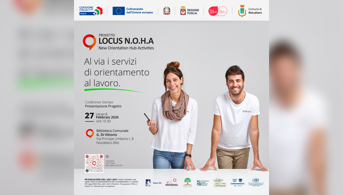 Il Comune di Noicàttaro presenta Locus N.O.H.A. – New Orientation Hub Activities, progetto finanziato dalla Regione Puglia nell’ambito di “Punti Cardinali for Work – Punti di orientamento per la formazione e il lavoro”. L’iniziativa mira a costruire un sistema territoriale di orientamento permanente (Life Long Orientation) per supportare giovani e adulti nelle scelte formative e professionali, favorendo l’incontro tra domanda e offerta di lavoro e riducendo il mismatch occupazionale.
