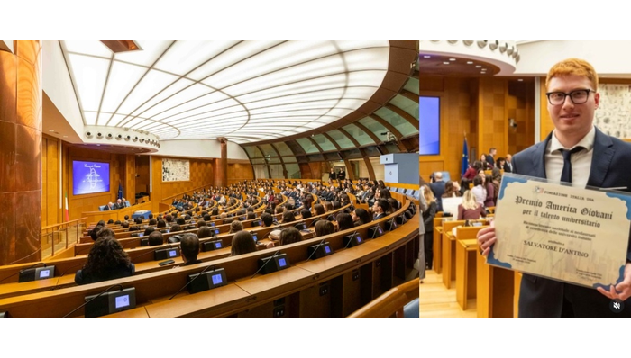 Salvatore D’Antino, 25 anni, originario di Lucera (FG) e neolaureato magistrale in Ingegneria Gestionale al Politecnico di Bari, è stato insignito del “Premio America Giovani” dalla Fondazione Italia-USA, entrando così tra i mille giovani talenti italiani riconosciuti ogni anno per il loro percorso di eccellenza accademica. La cerimonia di consegna si è svolta il 26 gennaio scorso presso la Camera dei Deputati.