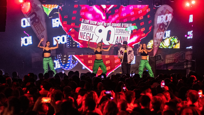 Il format alterna dj set e momenti performativi con vocalist, ballerine coreografate e mascotte ispirate a personaggi simbolo dell’immaginario anni ’90, tra cui Mario e Luigi della saga di Super Mario, Doraemon e Freddy, mascotte ufficiale dell’evento.